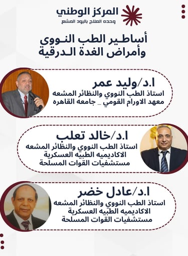 نقدم رعايه متكامله لمرضي الغدة الدرقية بأحدث الأساليب العلاجية اليود المشع العلاج الأوحد بنسبه ٩٥ % من سرطان الغدة الدرقيه للقضاء علي بقايا أنسجه الغده بعد إجراء الجراحه وكذلك في فرط نشاط الغده و التشخص المبدئي